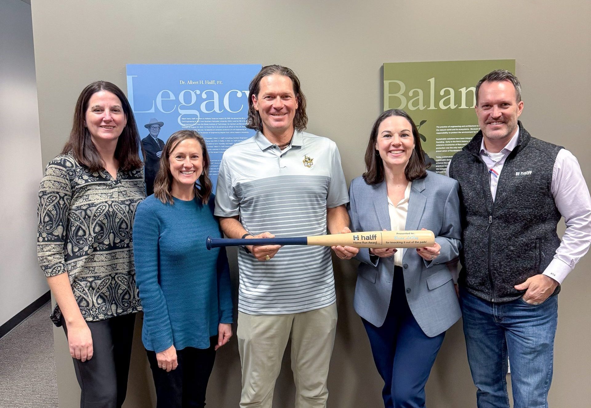 The Halff Home Run Award was established in 2020 by former Halff President and CEO Mark Edwards. It recognizes employees who represent the spirit of Halff by leading with integrity, supporting those around them and consistently serving with purpose.